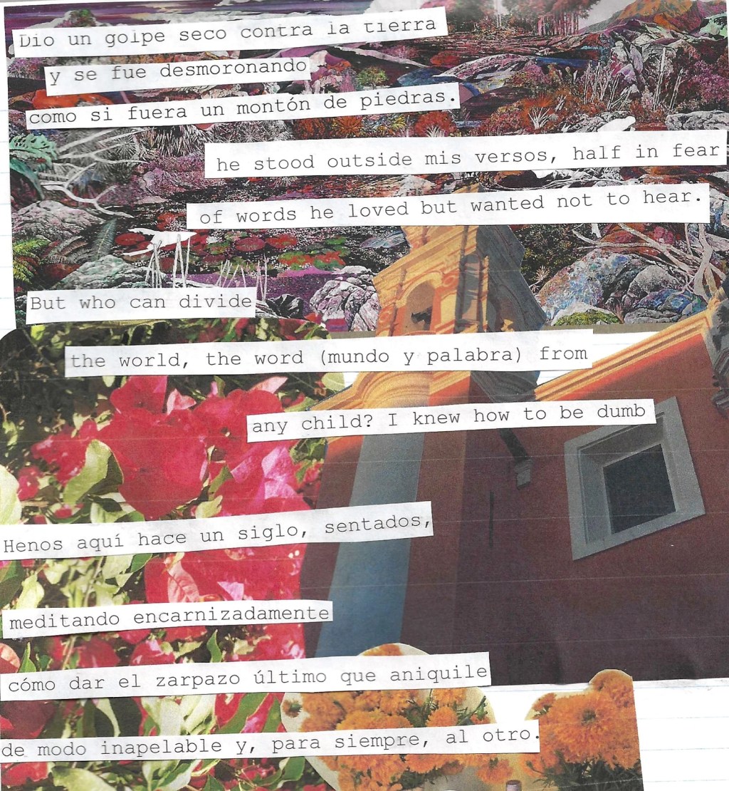 Hence, I’ve come to a realization; when writing poetry or any sort of literary piece, I get a sense of leaving behind a certain degree of emotional vulnerability in those written in English. These pieces do feel mine but are somehow detached from my own indulgent sentimentalism if I craft them in English. Thus, by composing something in English, I have to add an extra layer of attention and intent when it comes to the word choice, as well as the structure of the sentences I’m writing, making it a much more technical process instead of overtly emotional or sentimental. I came to this realization after thinking back on a conversation I had with one of my close friends recently, where I told them about how I broke up with my first boyfriend in English. I simply could not get the words out in Spanish, and it felt like I was not the one “hurting” him if I spoke in English. Now the whole ordeal seems rather comical, yet, when the event had taken place, I felt ashamed—not for having broken up with him (because that was long overdue, if I’m being honest), but because of my inability to express my emotions in my native language. It suddenly felt like I had a blockage set in the part of my brain that controlled my ability to speak in the language I had spoken since I uttered my first words.