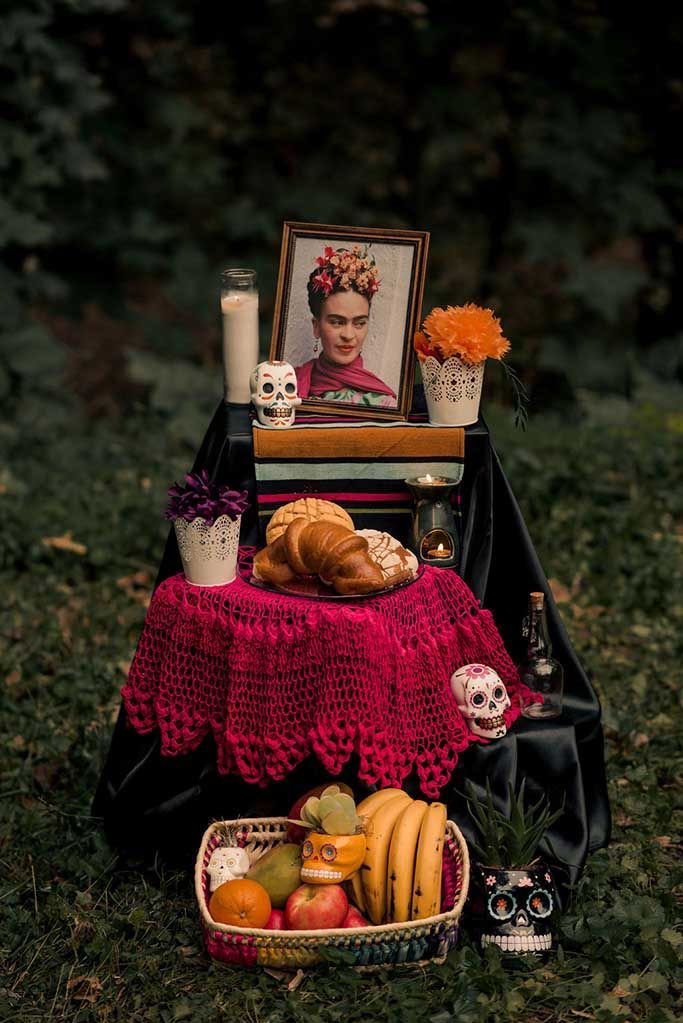 It was after the European conquest that the history of the Day of the Dead was forgotten. The main elements of this festivity remain, like the altars, eating pan de muerto, writing literary calaveritas, and more. For the private altars, families usually include their relative’s favorite food and drinks, incense, candles, skulls (now made of sugar, chocolate, or amaranth), and cempasúchil flower petals. These flowers are placed many times from the pantheon to the altar in the family home so that the souls do not get lost on their way.