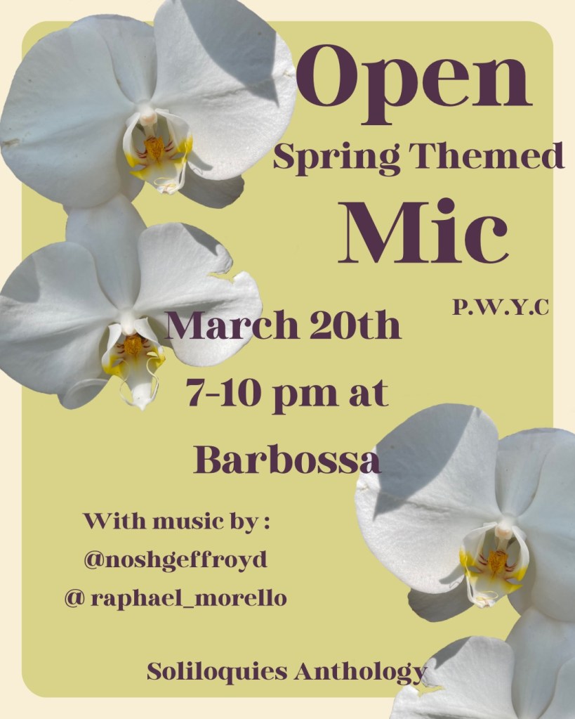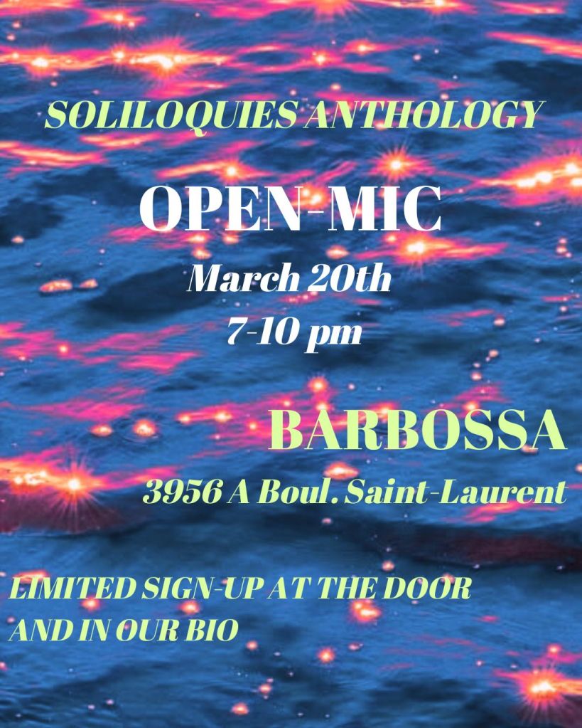 As well as being an exciting event to connect with your community of writers and readers, this evening will also be dedicated to fundraising for this upcoming edition of Soliloquies Anthology. The money raised through this evening will go directly back into our printing costs, as dramatic changes in our funding will likely impact the size and scope of our upcoming print issue. In short, the more drinks you buy and the more you donate = the larger our page count can be = the better your chances to be published in Edition 30.1!