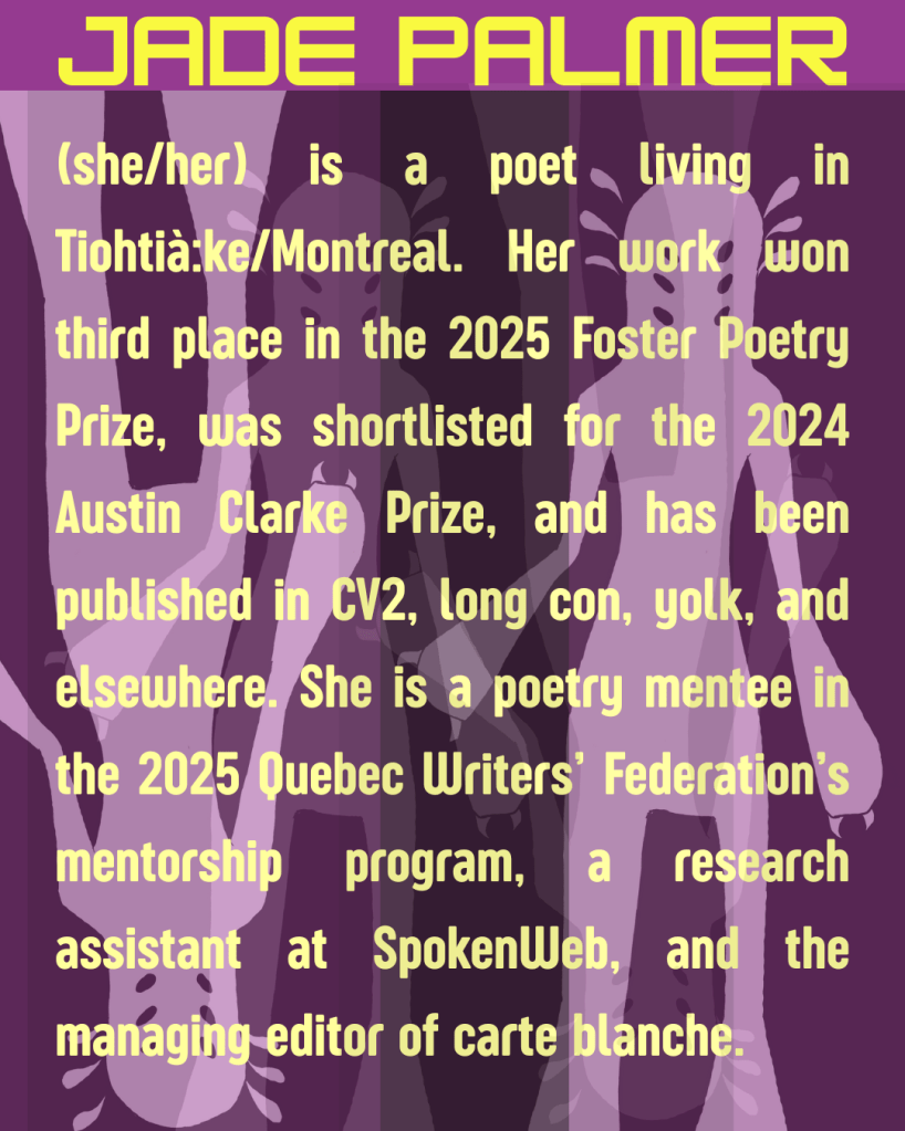 Hear readings from our contributors, along with our two feature readers and former Editor-in-Chiefs, Morgan Gordon and Jade Palmer.