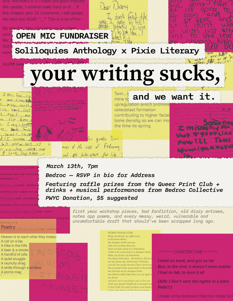 PIXIE LITERARY X SOLILOQUIES ANTHOLOGY OPEN MIC FUNDRAISER